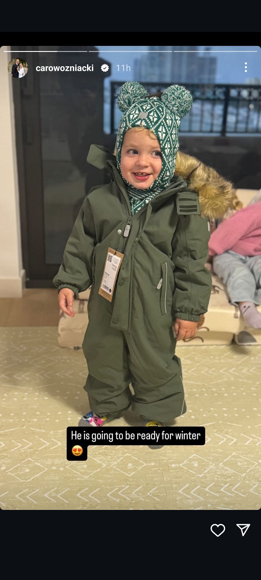 Wozniacki uploaded an image of her son James, who turned two on October 24, getting ready for winter.