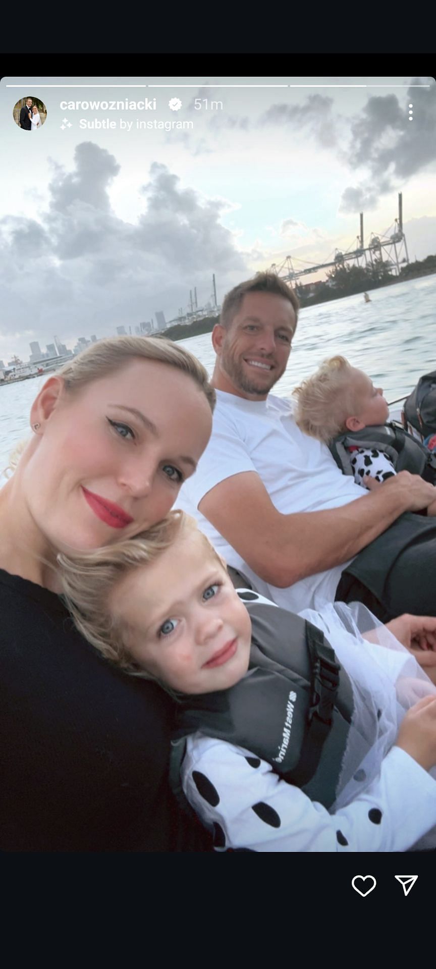 A few hours later, Wozniacki again posted an Instagram story, this time, with her husband David Lee, and their three-year-old daughter Olivia for a scenic boat ride.