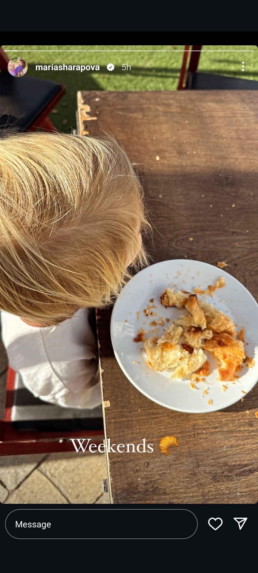 Sharapova, who regularly shares glimpses of her family on social media, recently took to Instagram to post a picture of her son enjoying a croissant as a 'weekend' treat.