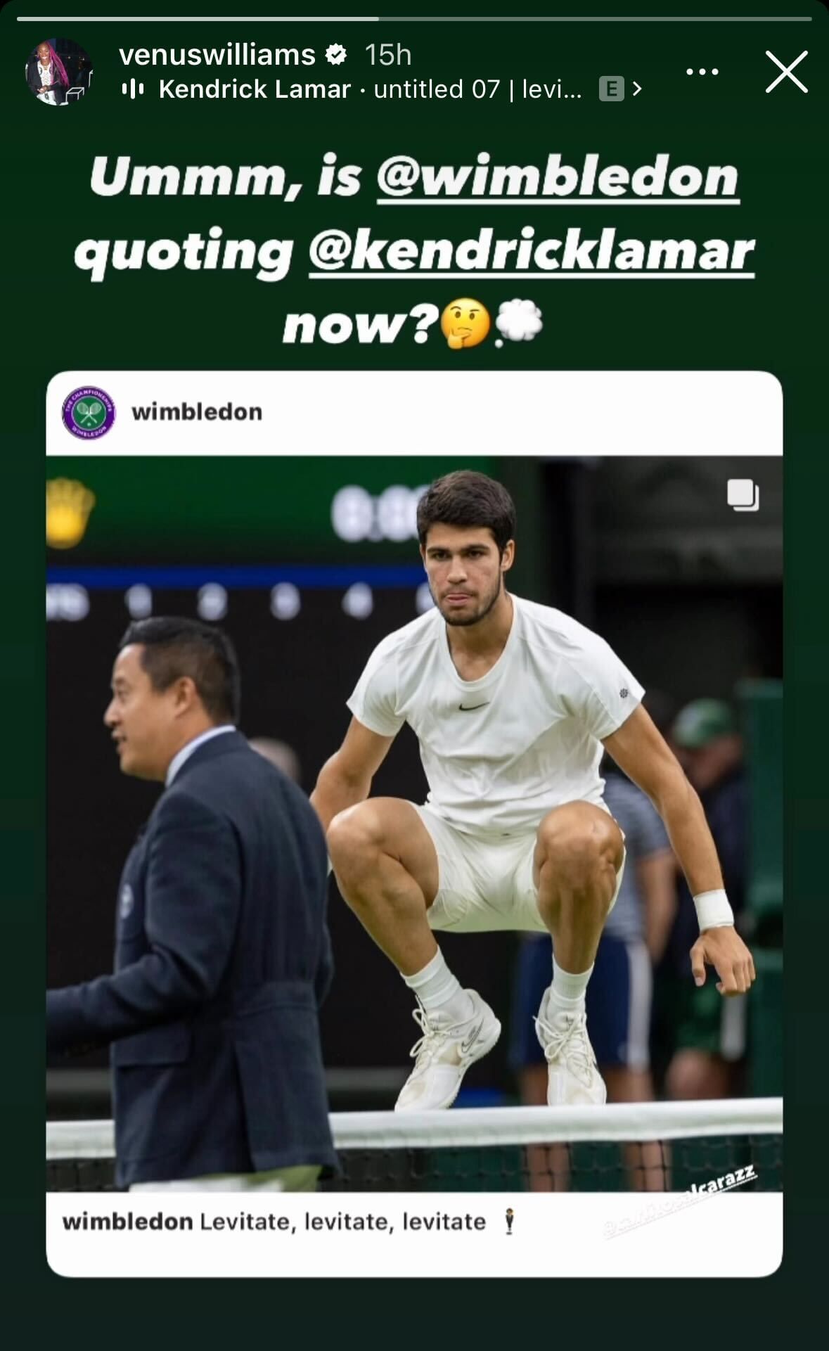 "Ummm, is @wimbledon quoting @kendricklamar now?" wrote Venus Williams