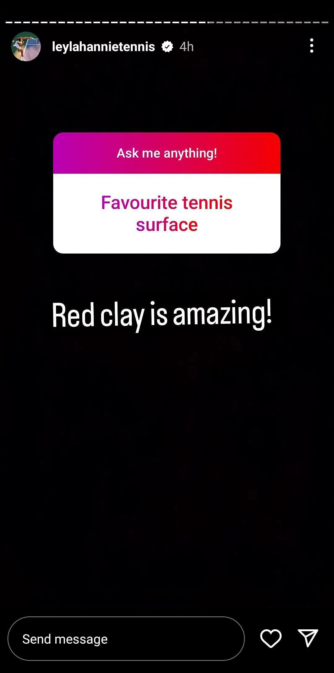 During her Q&A session, Fernandez also disclosed her favorite surface as well as her next tournament.