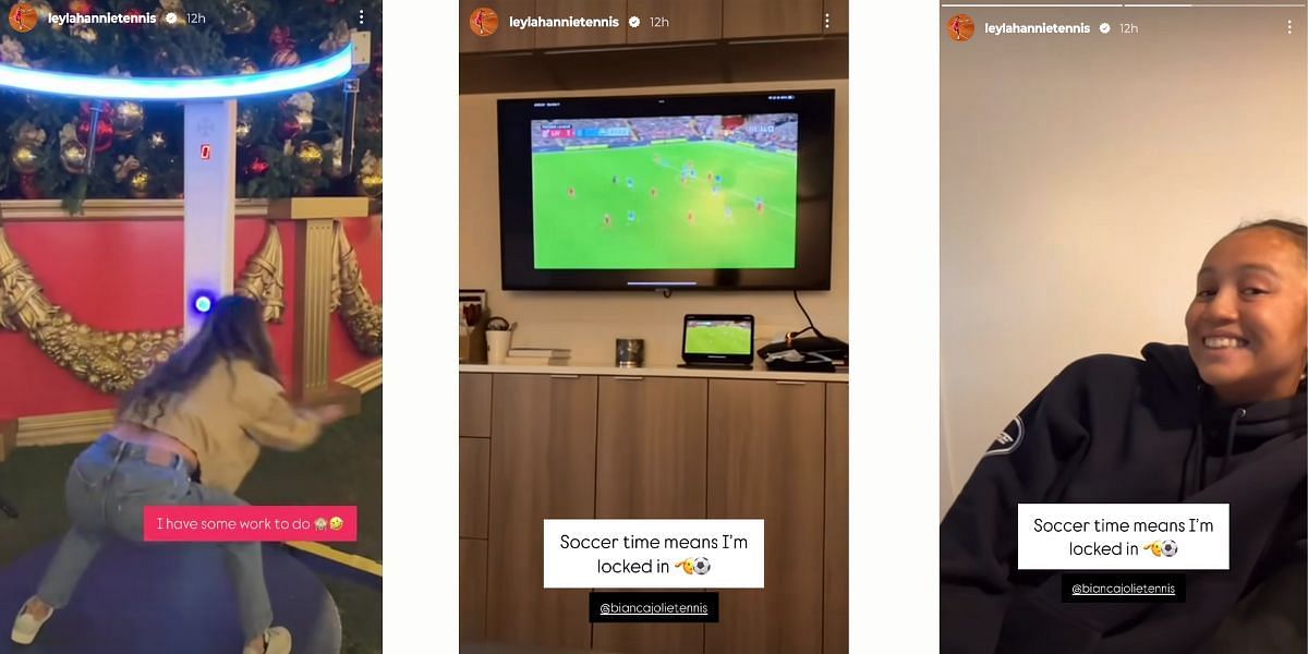 While her sister Bianca posed cheerfully in the background, Leylah was laser-focused on the game, captioning the clip: