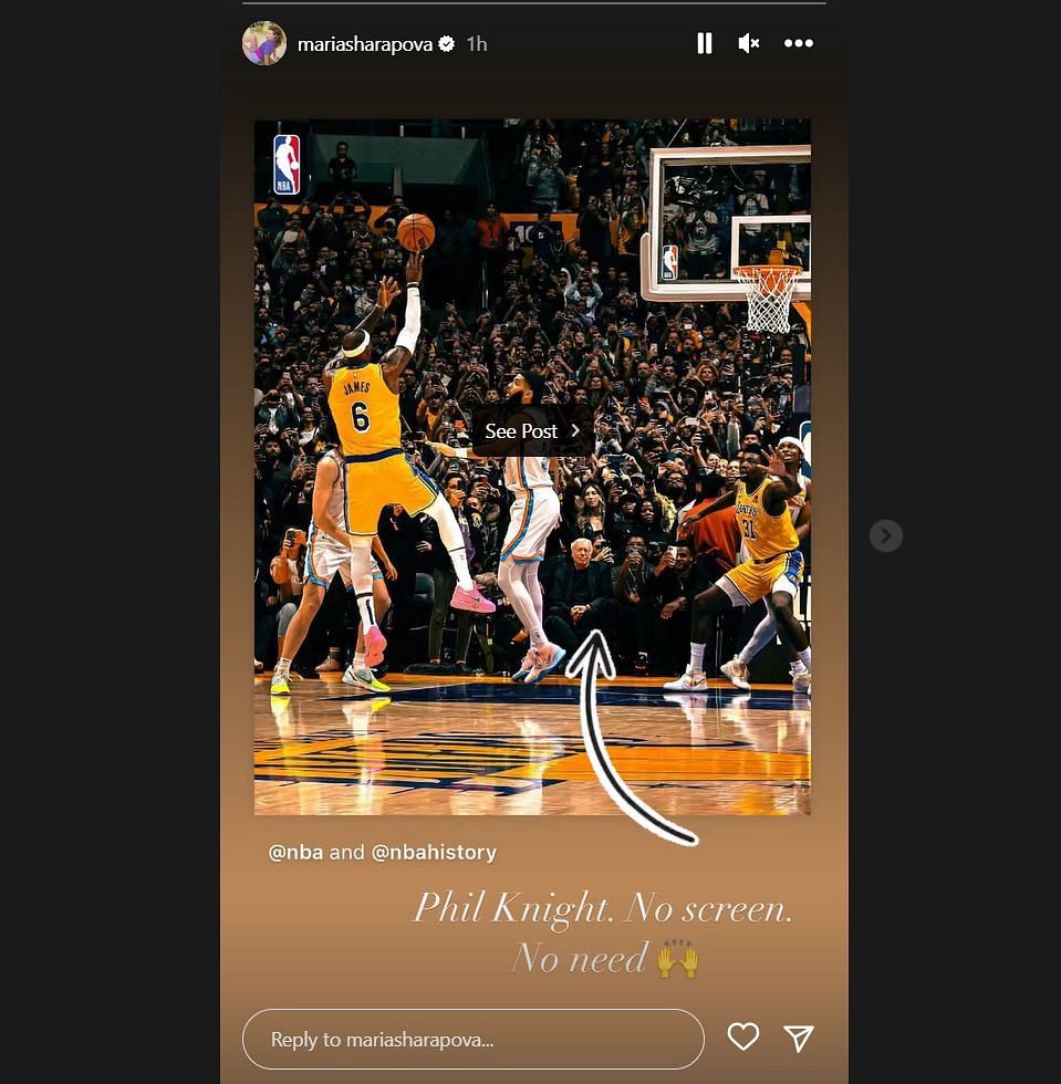 Maria Sharapova made an interesting observation during LeBron James' historic NBA moment on Tuesday night, pointing out a special guest in the stands. Amidst a packed crowd at the Crypto.com Arena in Los Angeles, Phil Knight, the famous co-founder of sports apparel and equipment giant Nike, was seated courtside and watched James create history.