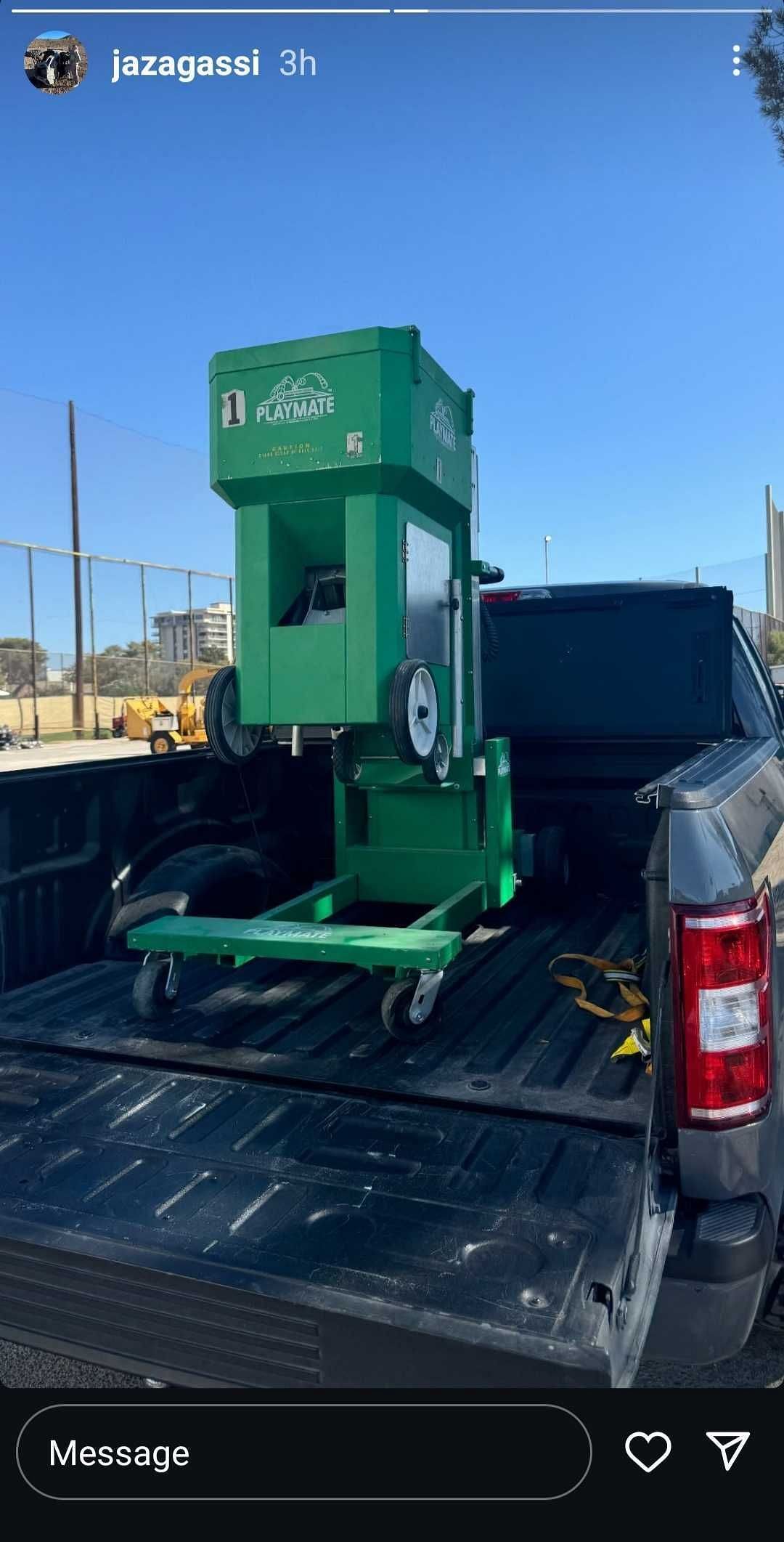 Jaz took to Instagram to give her followers a glimpse of what she's up to. In one Story, she uploaded an image of a tennis ball machine, specifically a Playmate tennis ball launcher, often used to practice tennis shots.