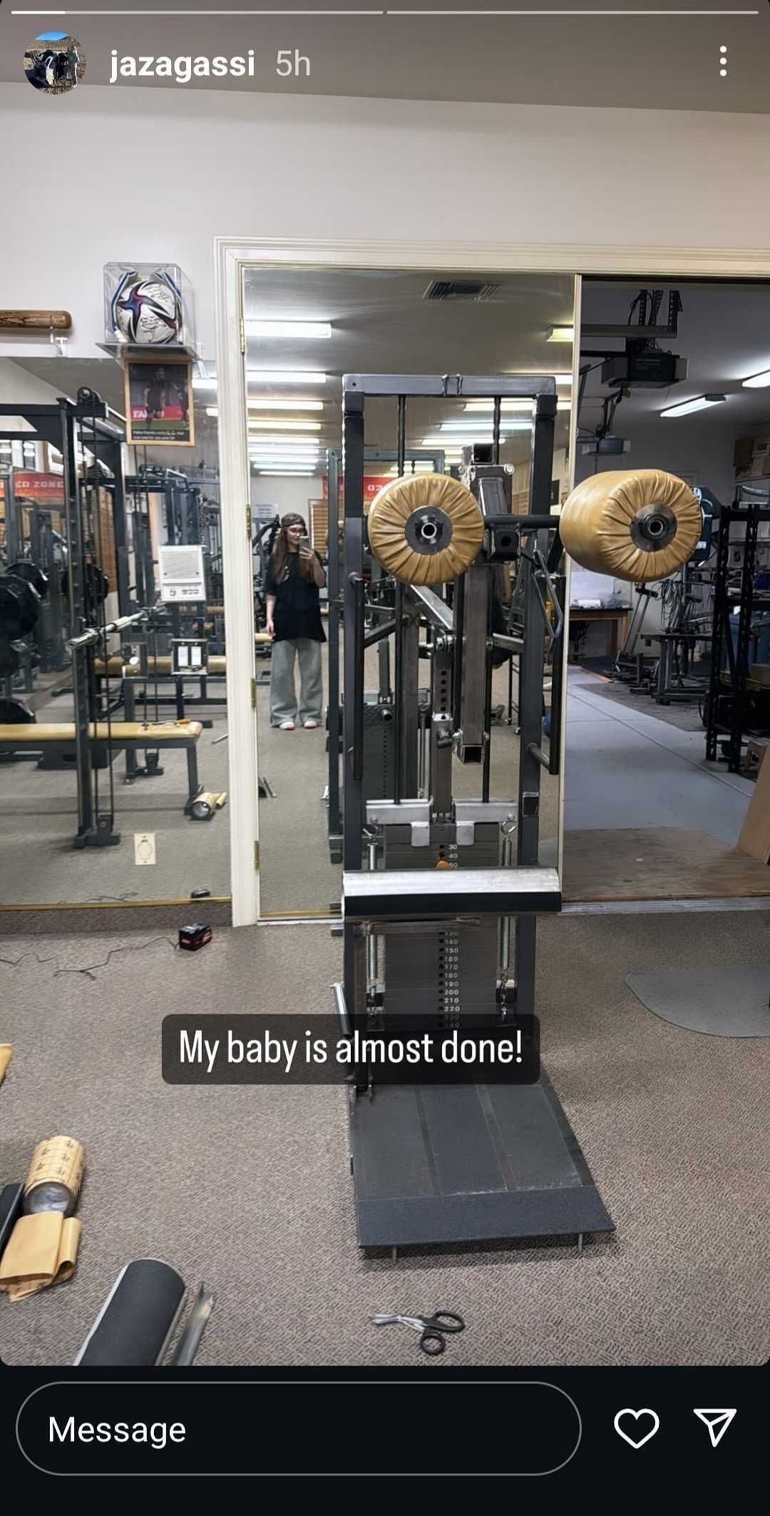 Meanwhile, in another Story, the 20-year-old, who describes herself as a fitness trainer in her Instagram bio, gave her followers an update on the latest addition to her gym equipment. A specific modification was being made to her gym setup, and she shared the work-in-progress with the caption: