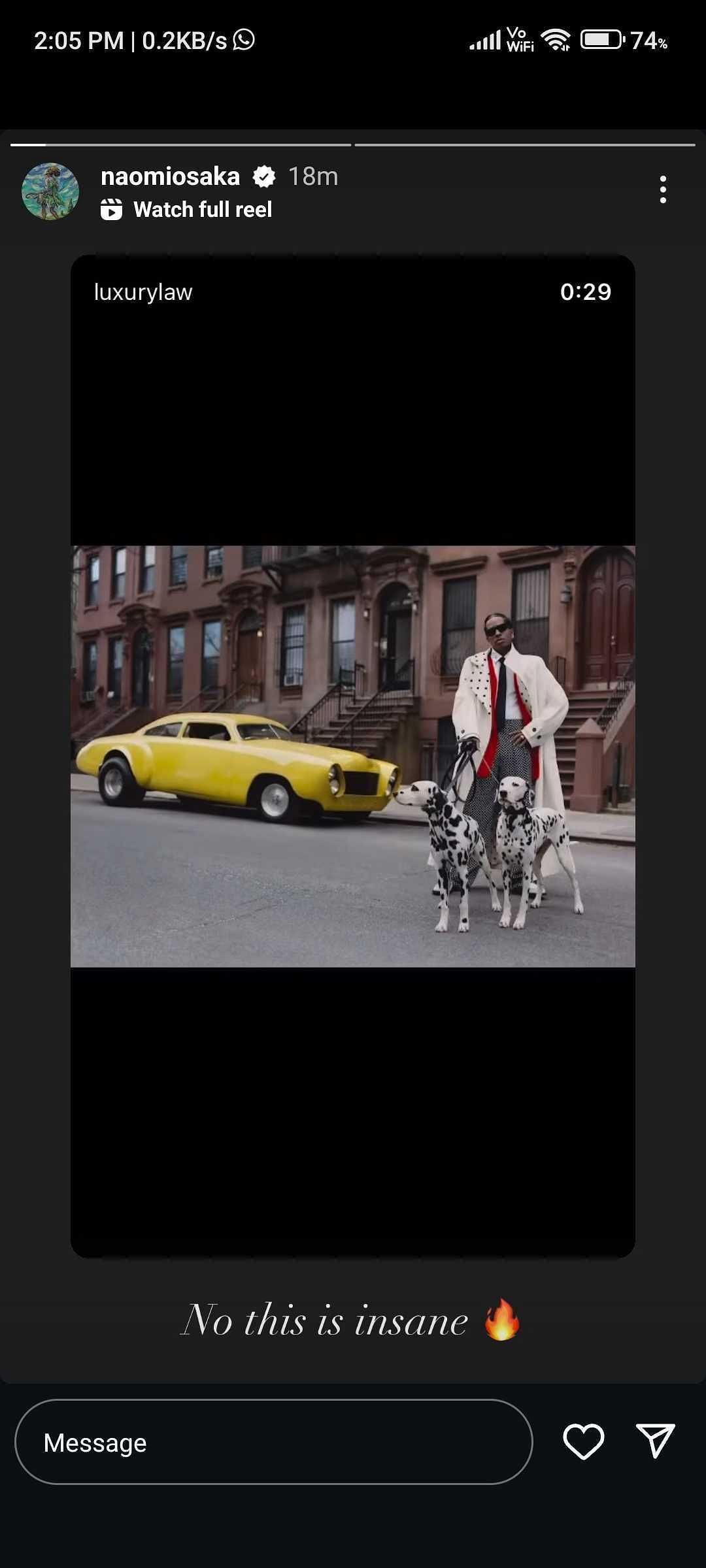 Naomi Osaka reposted Roach's image of A$AP Rocky in character, replete with two dalmatians, followed by her own caption, which read: