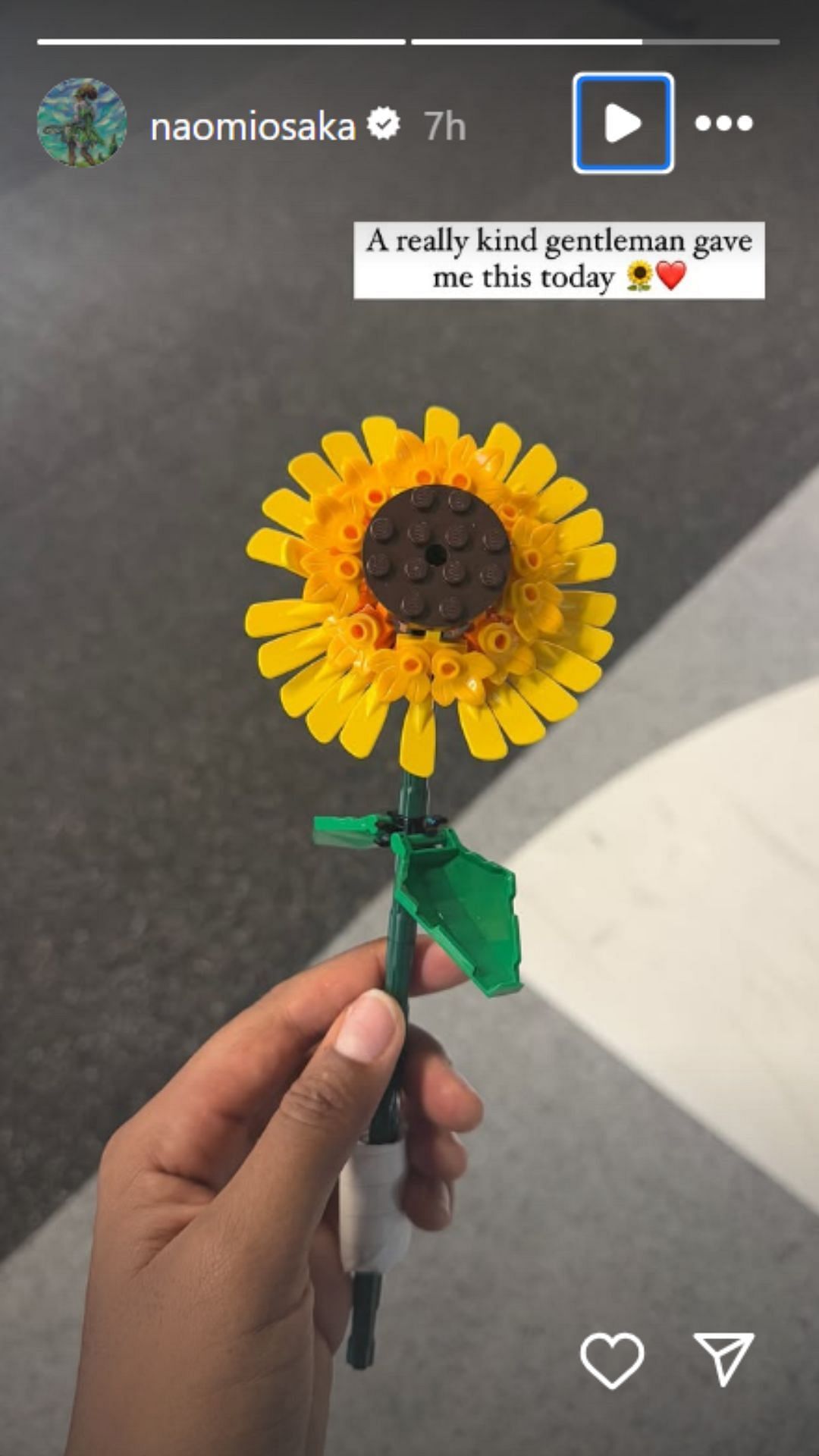 Taking to her Instagram Story, Osaka showed off a sunflower made out of LEGO. The detailing was neat and it was a very thoughtful gift. She captioned the image: