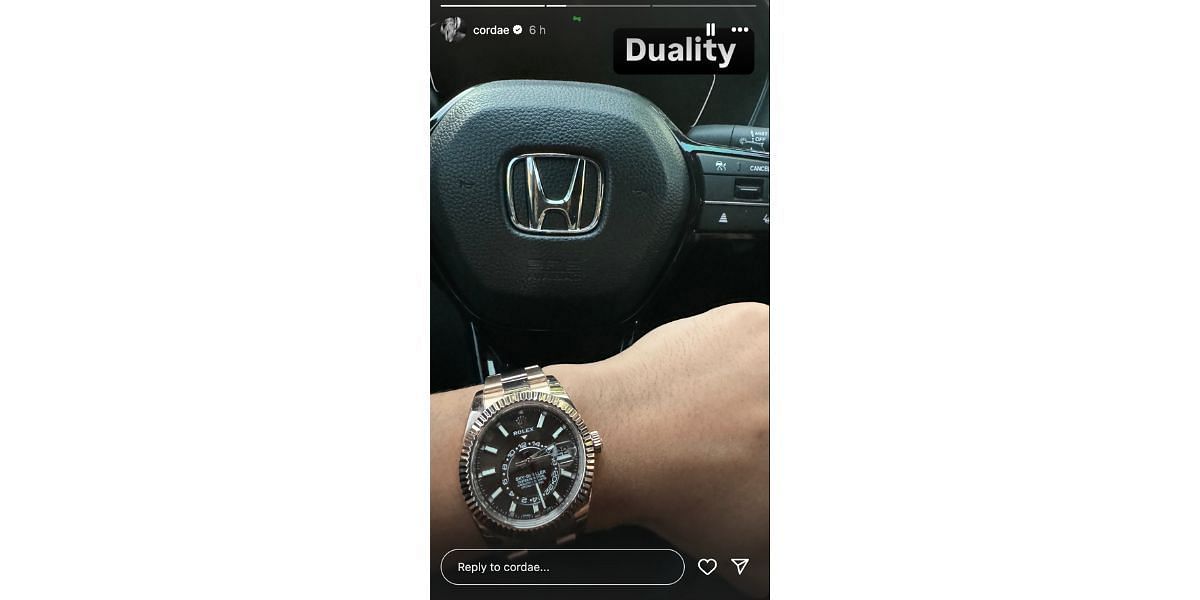 Cordae recently took to social media and flaunted his Rolex Sky-Dweller, which retails at $16,500. However, the 27-year-old poked fun at the "duality" of his lifestyle as he highlighted the Honda logo on his steering wheel.