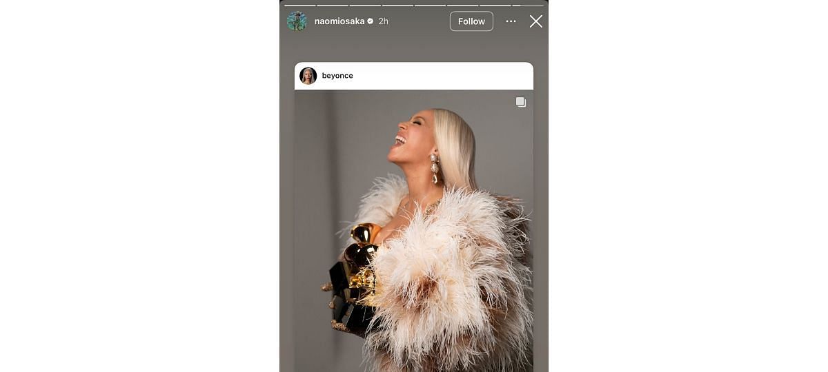On February 5, 2025, Osaka, a Beyonce fan, shared a picture of the American pop star posing with her Grammy awards.