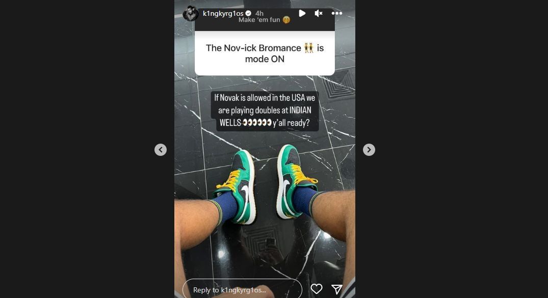 "If Novak is allowed in the USA we are playing doubles at INDIAN WELLS. Y'all ready?" Nick Kyrgios wrote on his Instagram Stories.