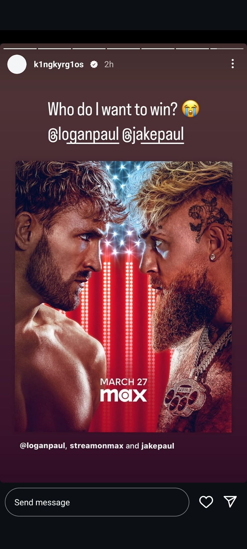 "Who do I want to win ? @loganpaul @jakepaul" posted Kyrgios on Instagram