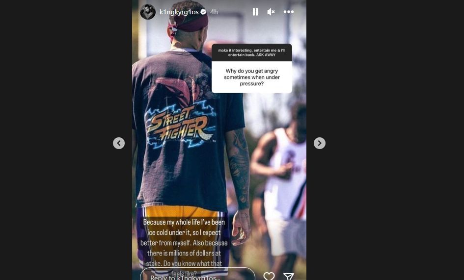 Kyrgios further expressed that he often gets angry on the court during challenging situations because he has high expectations of himself and because there are "millions of dollars at stake."