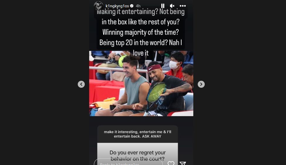 Kyrgios answered questions from fans during a Q&A session on social media, and one of the questions posed to him was about his often-debated aggressive behavior during matches.