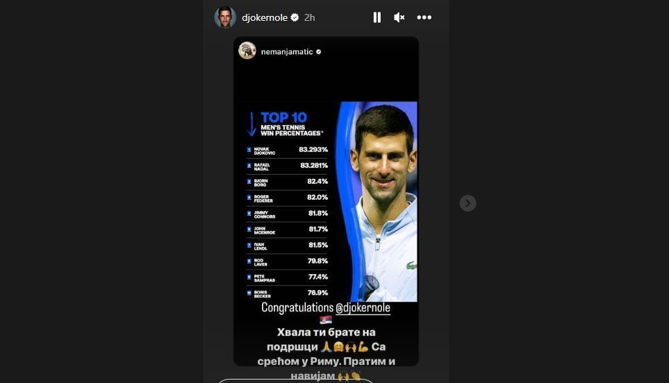 Matic took to Instagram to congratulate his compatriot on the achievement and the Serbian tennis great reacted to Matic's message.