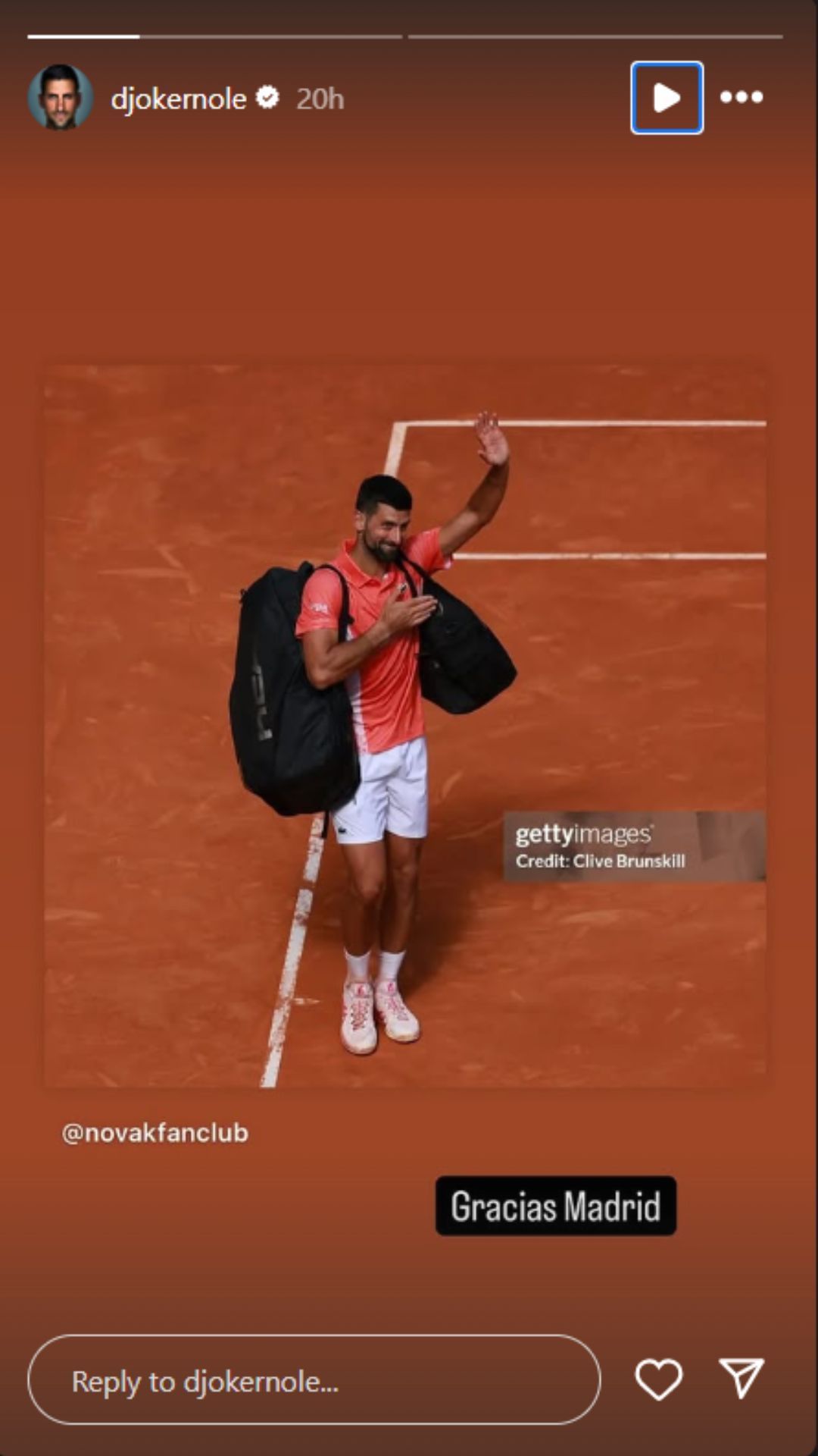 After facing defeat in the Miami Open final and his campaign-opener at the Monte-Carlo Masters, this was Djokovic's third consecutive loss. Still, the Serb was gracious in defeat, as he shared an image on Instagram of himself showing appreciation to the Madrid crowd with the caption: