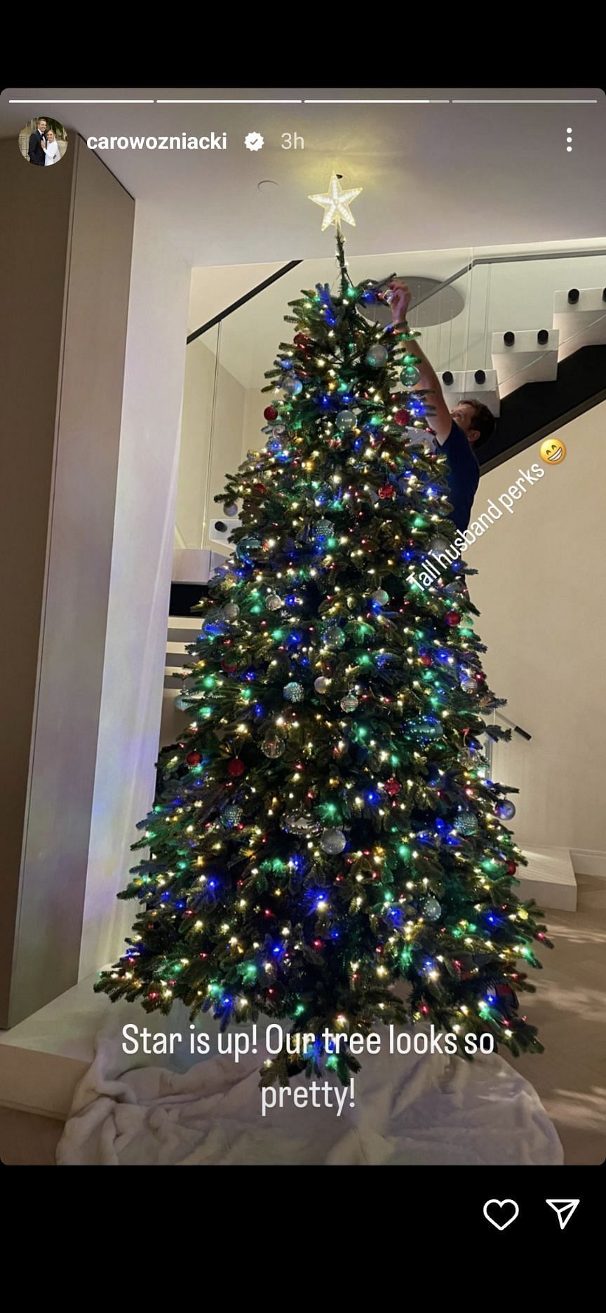 Wozniacki accompanied her husband David Lee in decorating the house. She was initially disappointed to have bought a fake tree for Christmas this time around as she never liked them. After much convincing, the Dane was giving it a try. She marked her dislike for such artificial trees on her Instagram story on December 1.