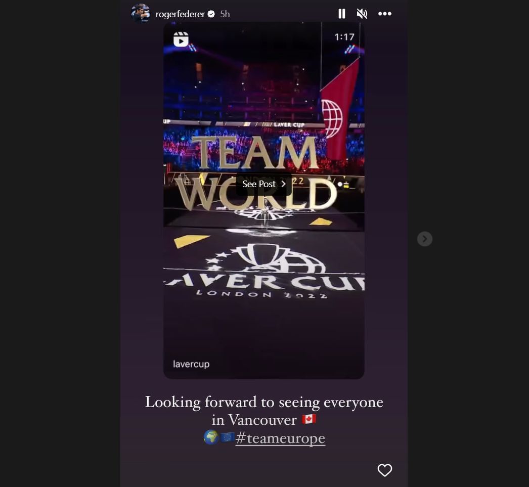 "Looking forward to seeing everyone in Vancouver," the 41-year-old wrote on Instagram, reacting to a Laver Cup build-up post.