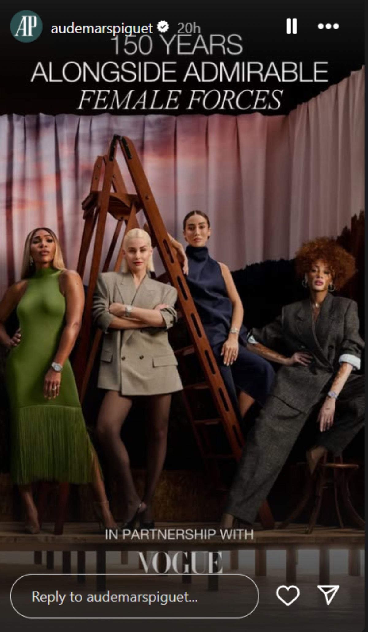 The post from Audemars Piguet champions their brand. It also stresses their longevity and commitment to providing luxury watches for women. They caption the series:
