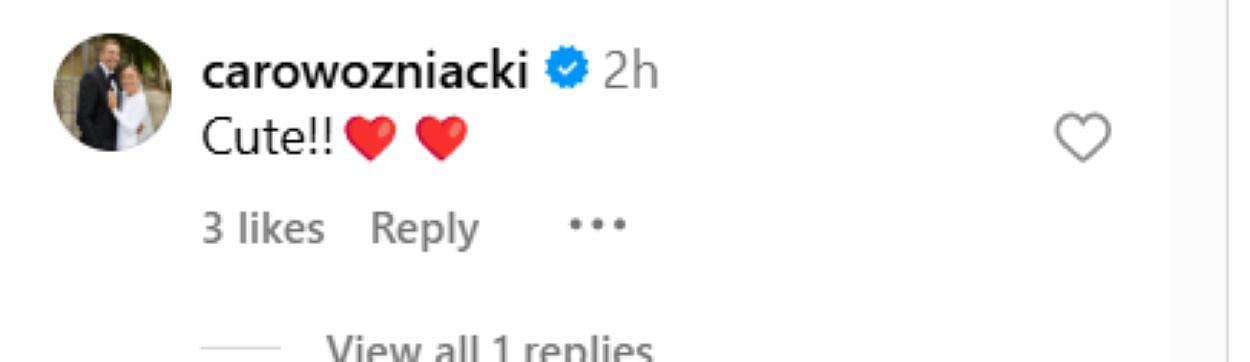 The 23-time Major winner's comments section was populated with congratulations. Alexis Ohanian posted a heart emoji, while Wozniacki gave a one-word response, followed by two hearts: