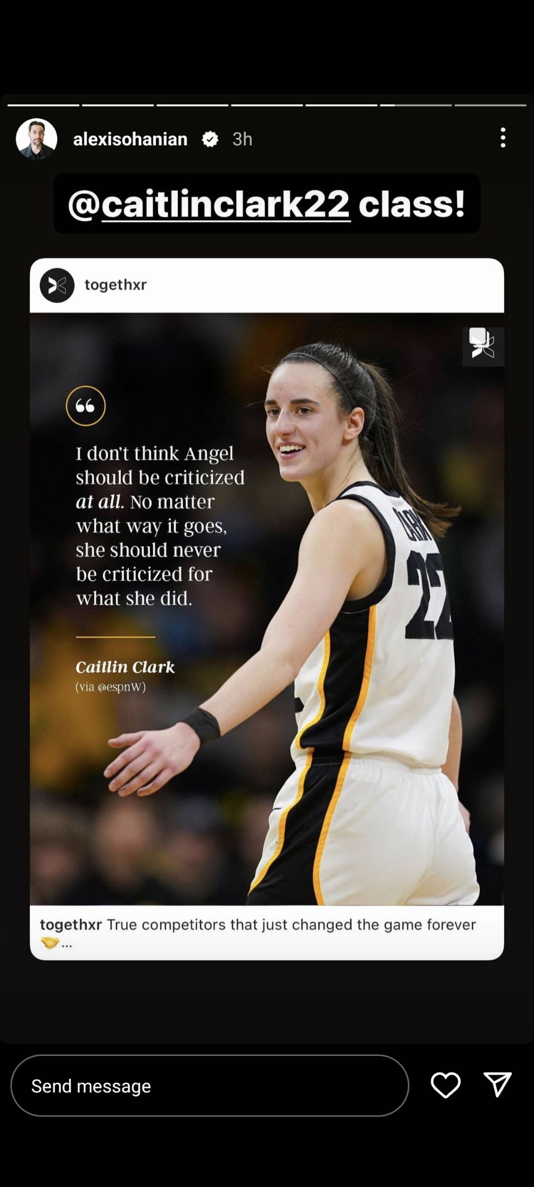 "@caitlinclark class!" Alexis Ohanian captioned his Instagram story.
