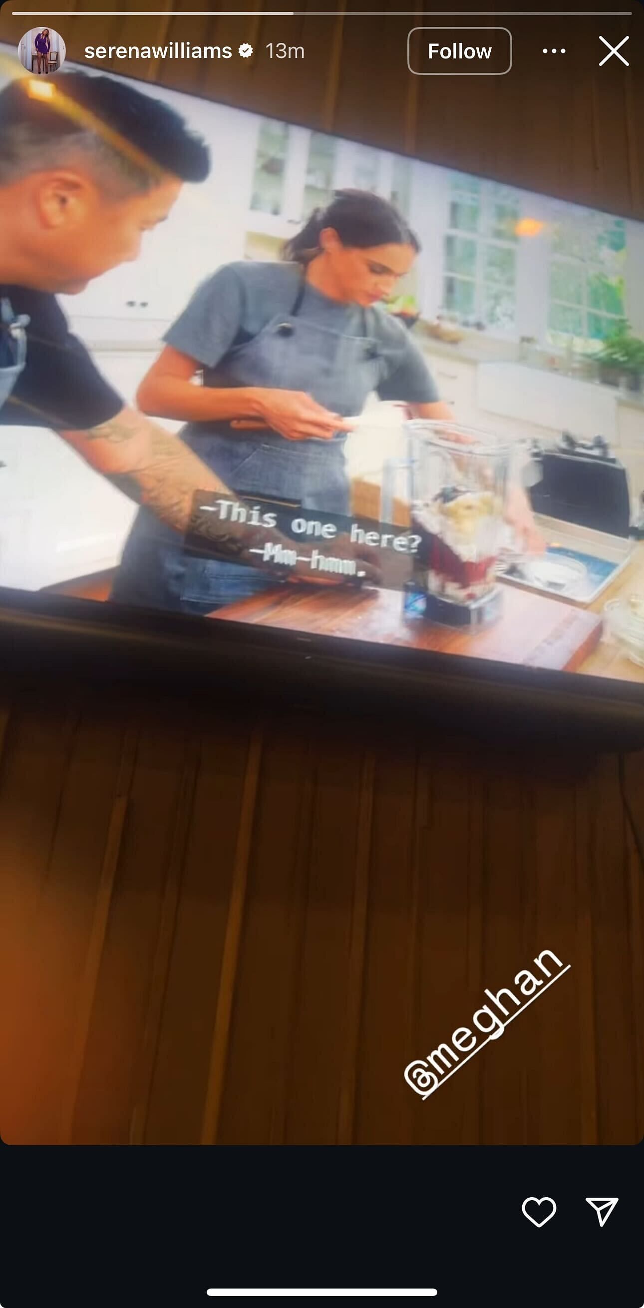 On Sunday, March 9, Williams took to her Instagram Stories and posted a brief video featuring her television screen streaming 'Two Kids from LA', the third episode of With Love, Meghan. In the episode, Markle teams up with fellow LA-born Korean-American chef, Roy Choi.
