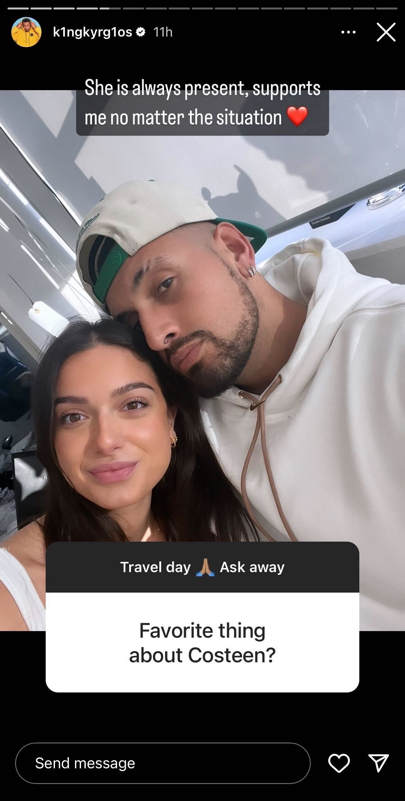 The 28-year-old recently hosted a Q&A session on his Instagram story, wherein he responded to numerous fans and their questions. One of his followers on the platform asked to know his favourite thing about his girlfriend Hatzi, to which Kyrgios answered: