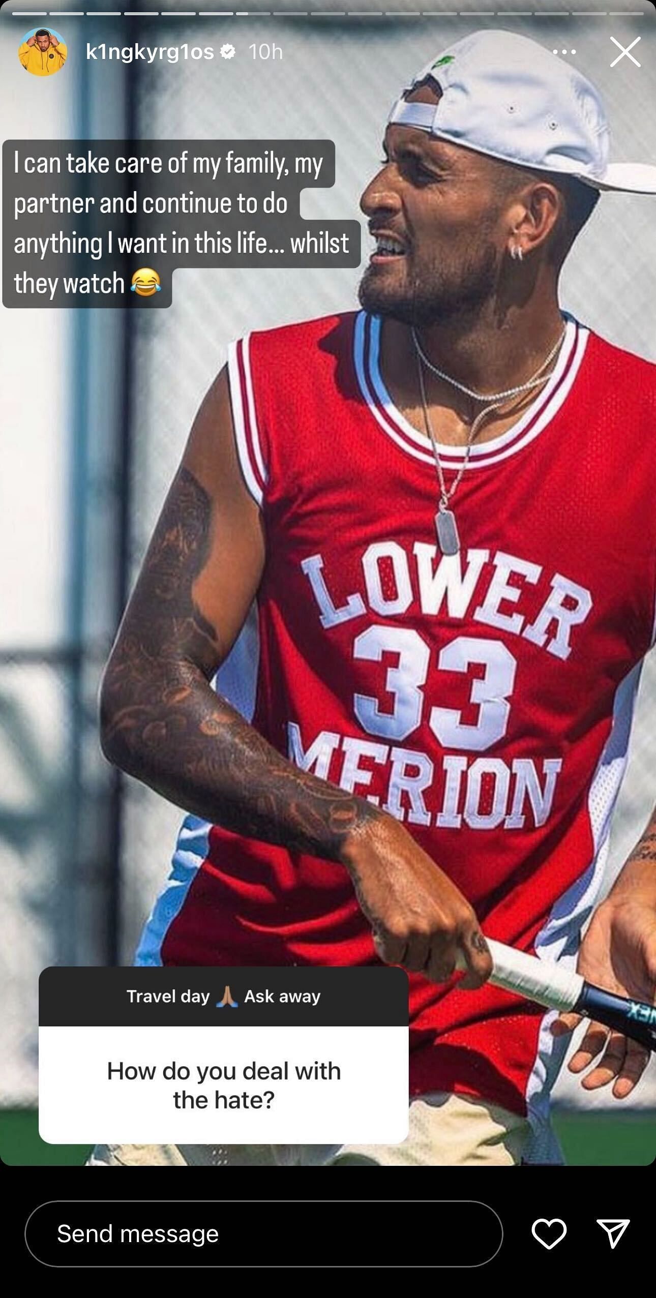 The Australian tennis icon has on numerous occasions misbehaved with officials and fans, which has inadvertently led to a general dislike for him among some in the tennis world. A follower asked Kyrgios how he deals with the hate he receives, to which the World No. 37 said: