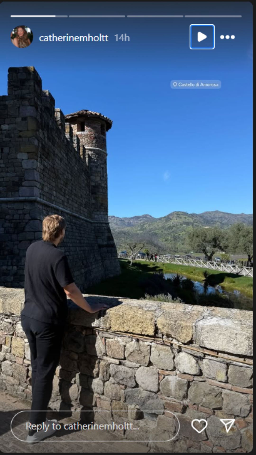 Catherine shared two images from her trip with Jaden to the Californian winery. In the first image, the son of the tennis power couple was seen posing with the castle in the backdrop.