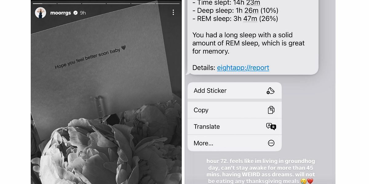 Morgan Riddle also updated fans on her health, saying she's been experiencing bizarre fever dreams as a consequence of her illness. The 27-year-old added that she plans to sacrifice Thanksgiving festivities in hopes of a speedy recovery.
