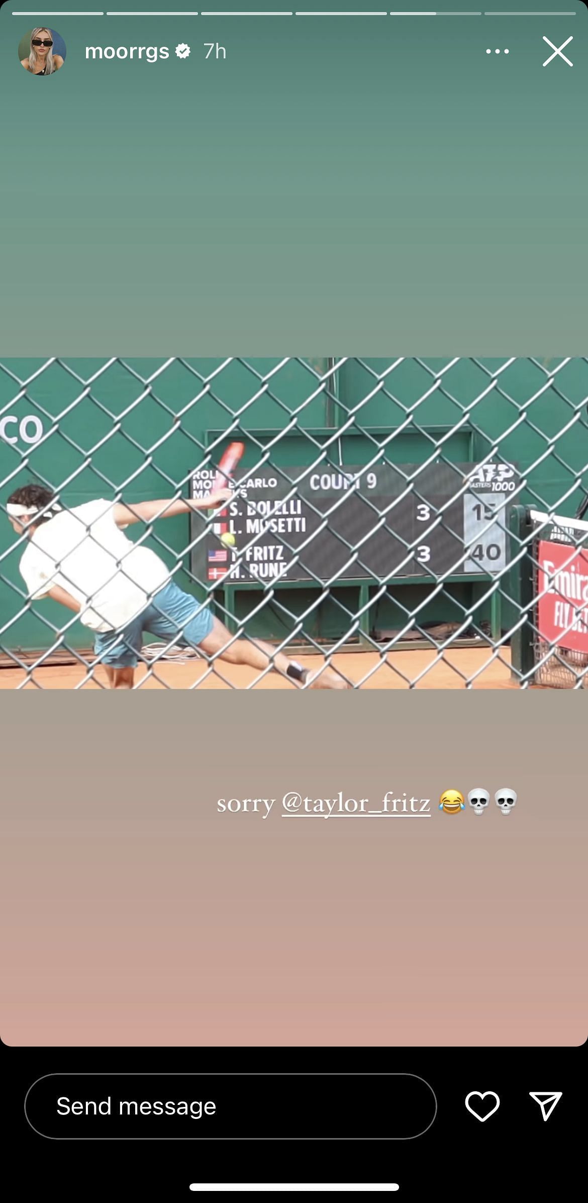"Sorry @taylor_fritz," Riddle wrote with a laughing emoji