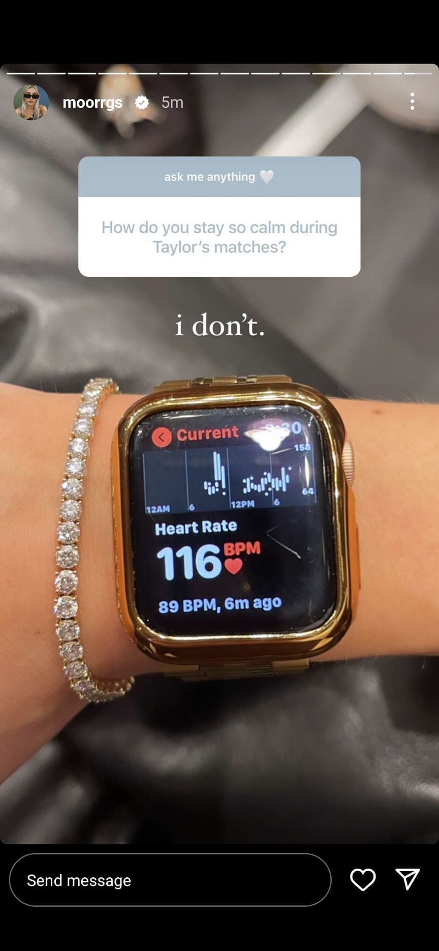 When asked how she maintained a calm demeanor during Taylor Fritz's matches, Riddle divulged that she wasn't as composed as she looked and shared evidence of her heart rate spiking from 89 beats per minute to 116 within a short duration while watching Fritz play.