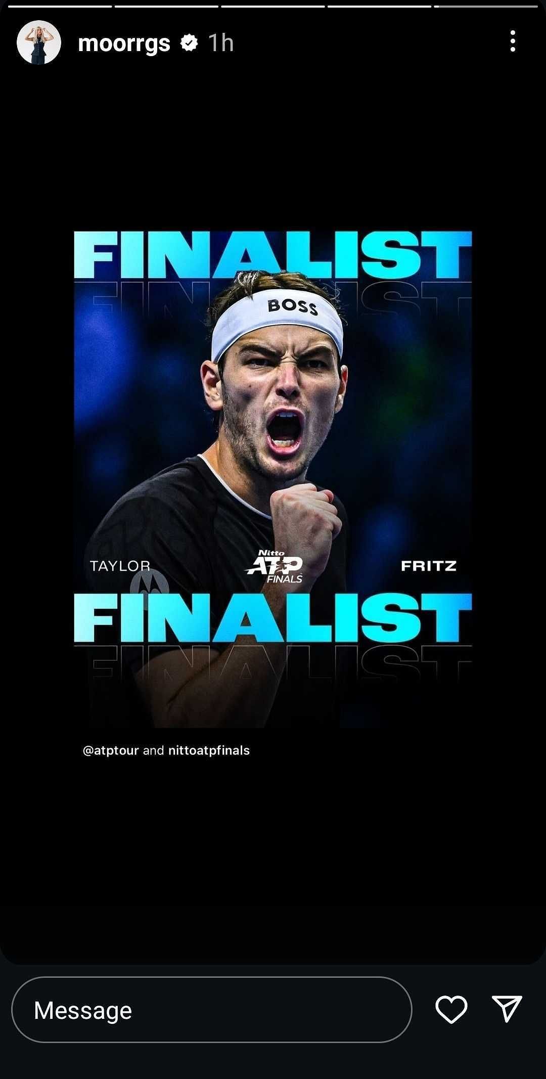 Later, Morgan Riddle, Taylor Fritz's influencer girlfriend, took to Instagram and shared an image of the American celebrating his win over Zverev on her Instagram stories.