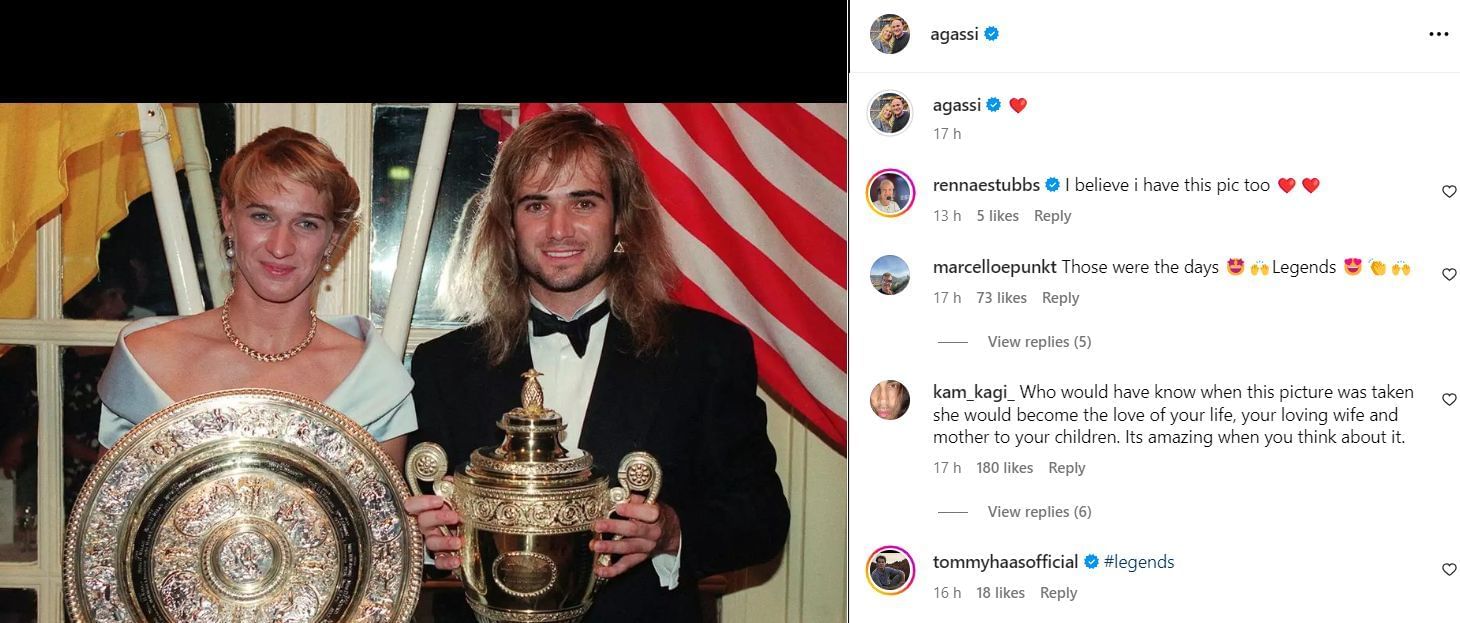Andre Agassi shared an old image of himself with Steffi Graf, and it attracted attention from former World No. 2 Tommy Haas.