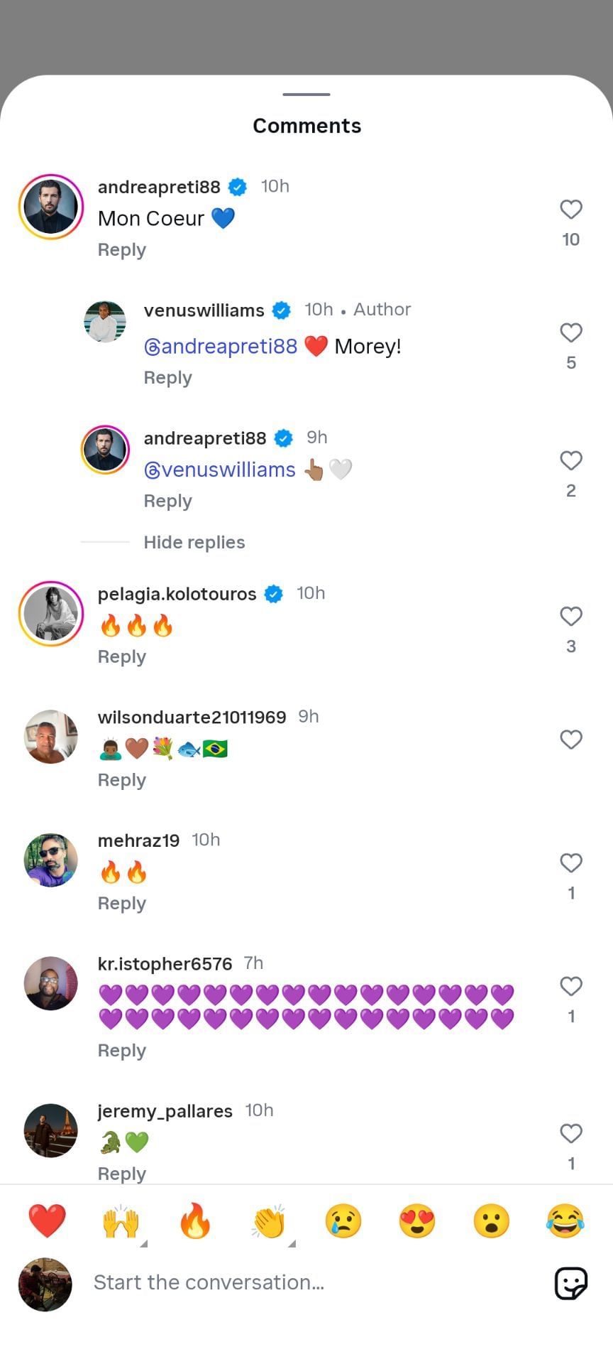 Preti left a sweet comment on Williams' post, appreciating her fresh summer style. Here’s what he said to the former World No. 1:
