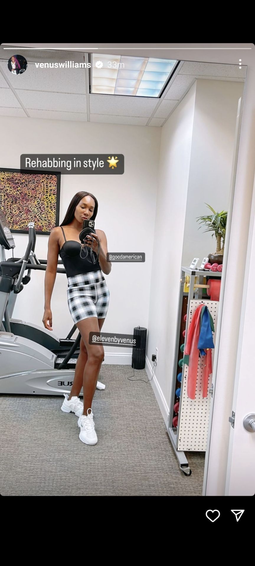 "Rehabbing in style," wrote Williams on her Instagram story.