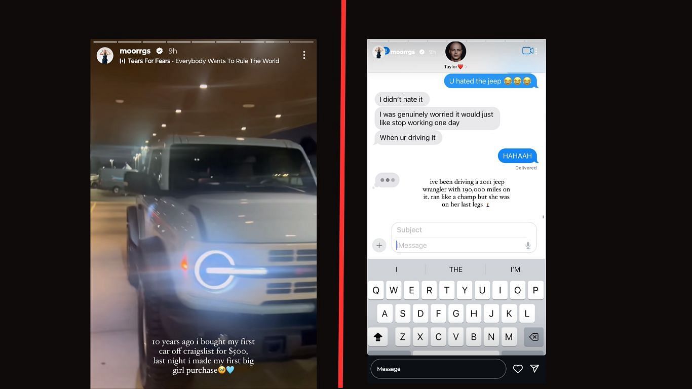 "You hated the Jeep," wrote Taylor as per the screenshot shared by Riddle.