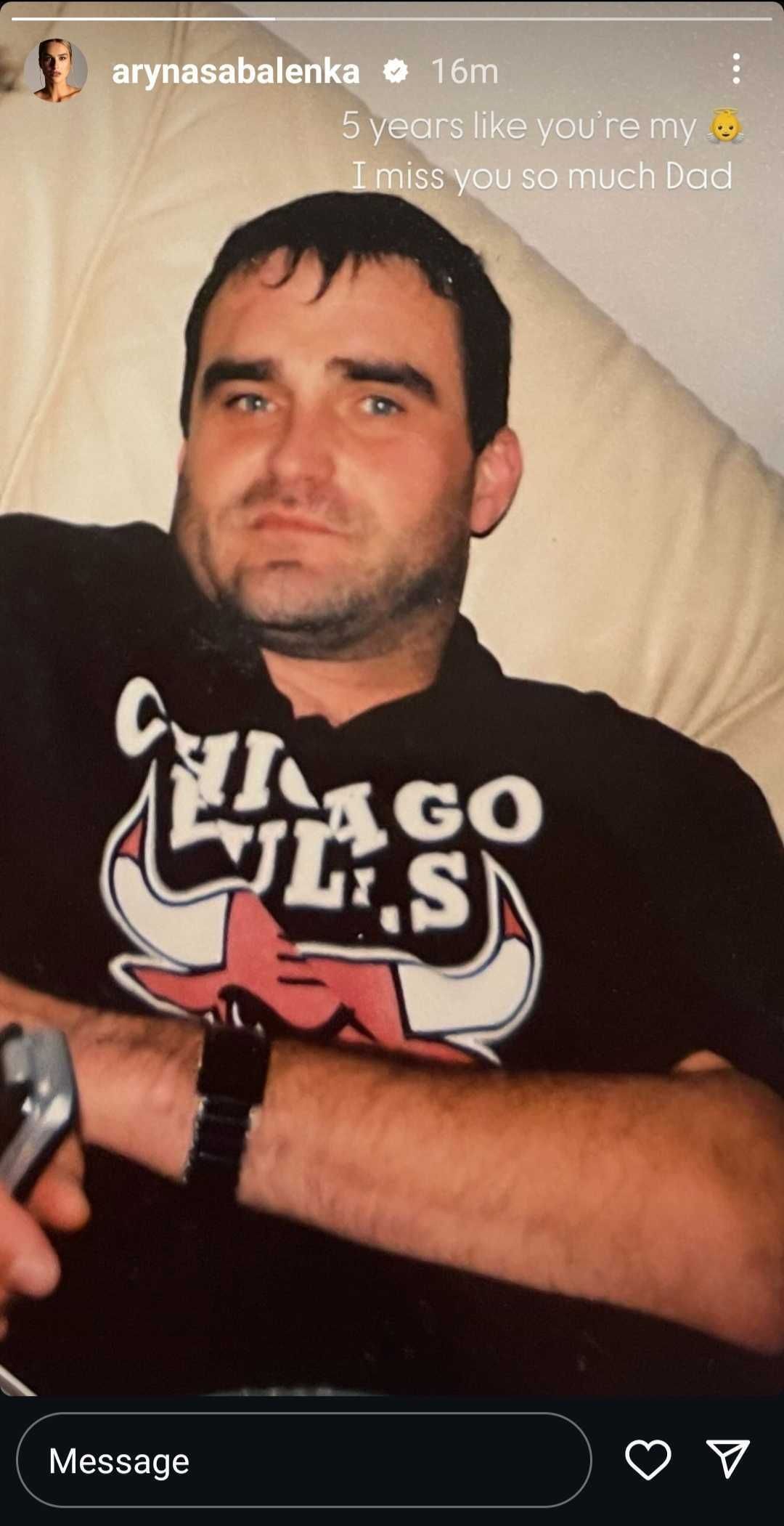 "5 years like you’re my 👼 I miss you so much," Aryna Sabalenka wrote on her Instagram stories.