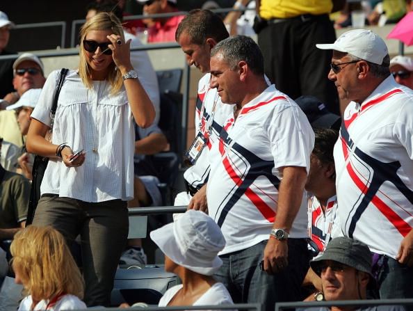 NEW YORK – SEPTEMBER 09: Tennis player Maria Sharapova sits in the box of Novak Djokovic of Serbia prior to his 2007 U.S. Open Men