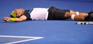 Novak Djokovic (R) and Rafael Nadal both exhausted after their marathon Australian Open final in 2012