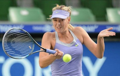 Maria Sharapova of Russia returns a shot against Lucie Safarova of the Czech Republic during their women’s singles third round match at the Pan Pacific Open tennis tournament in Tokyo on September 26, 2012. Sharapova beat Safarova 6-2, 7-6 (7/5).