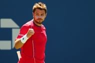 Stanislas Wawrinka of Switzerland celebrates a point during his men’s singles semifinal match against Novak Djokovic of Serbia at the 2013 US Open on September 7, 2013.