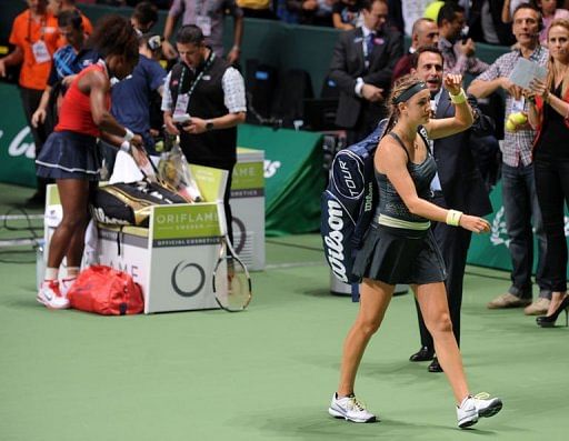 Victoria Azarenka of Belarus leaves after losing to Serena Williams of USA at the WTA Championships tennis tournament in Istanbul.