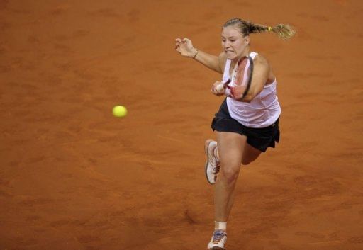 Germany’s Angelique Kerber returns to Serbia’s Bojana Jovanovski on April 20, 2013. Kerber, the world number six, beat Jovanovski 7-5, 6-2.