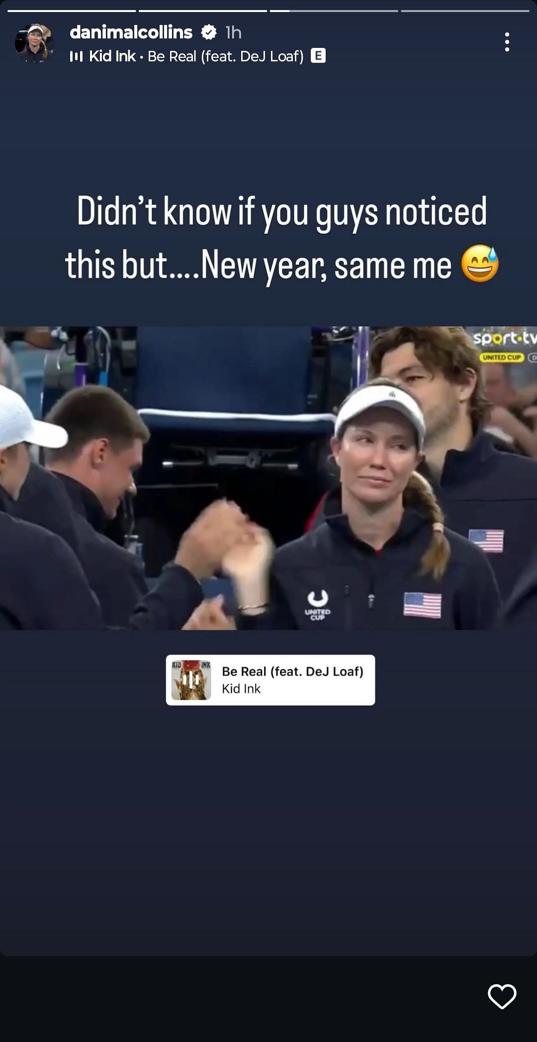 After USA's win at the United Cup, Collins and Swiatek were caught exchanging a handshake. However, Collins' hilarious expressions stole the limelight. The American posted that image of herself on Instagram story and later kept it as her display picture.
