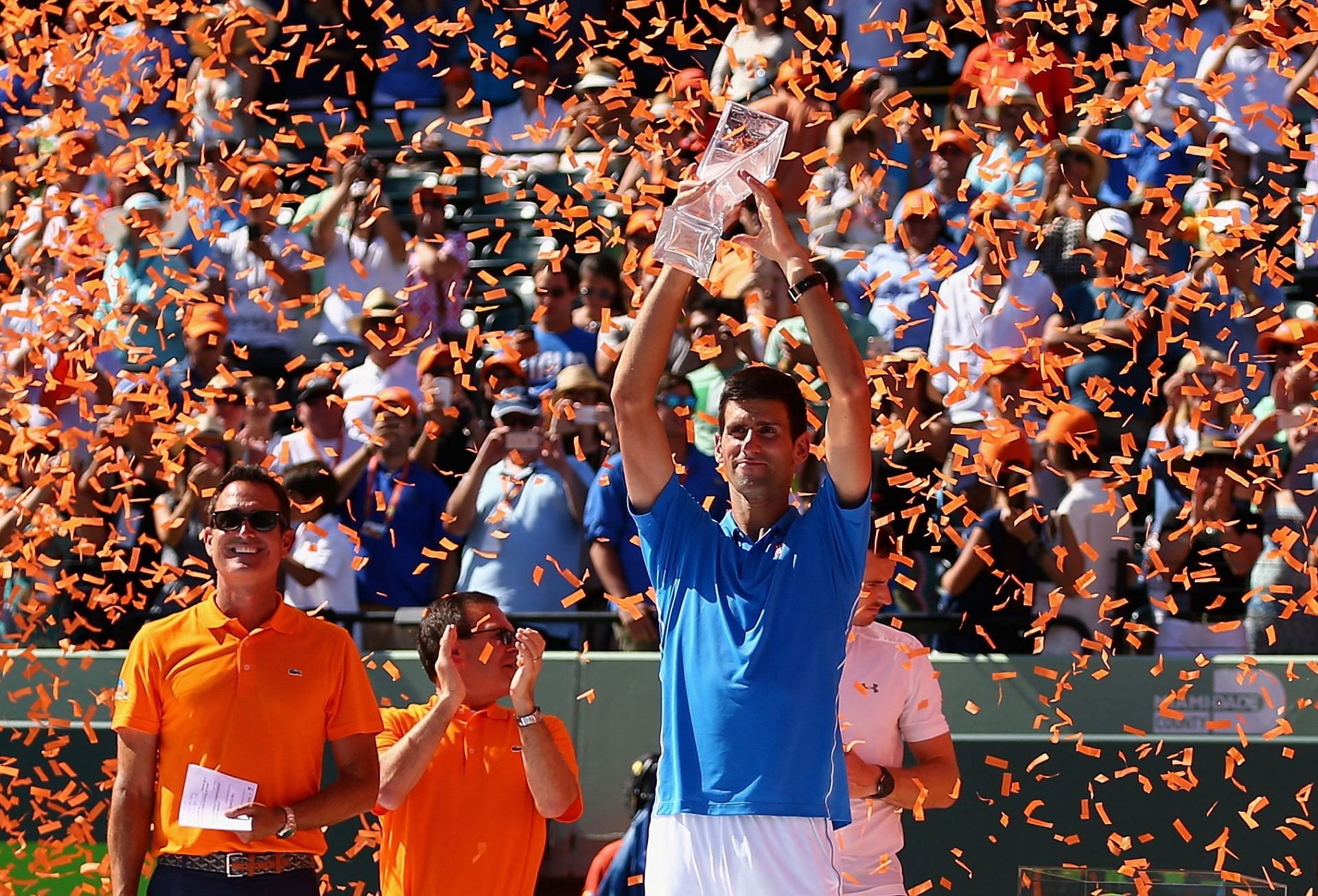In 2014 and 2015, he defeated fellow Big 4 members, Federer (twice), Nadal and Andy Murray in the four finals. He then beat Milos Raonic and Kei Nishikori in the 2016 Indian Wells and Miami finals, respectively, to cement his legendary status at the venues.