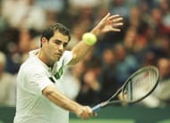 9 Apr 2000: Pete Sampras of the U.S. hits a backhand against Slava Dosedel of the Czech Republic during his straight sets win 6-4, 6-4, 6-6 (6-2) in the quarterfinal matches of the Davis Cup at the Great Western Forum in Los Angeles, California.