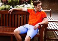While the colour code is restricted to white on field, off it, you can experiment with some colour. Team a brightly coloured (orange or red) solid casual polo T-shirt with a pair of blue comfort-fit shorts to ace this casual yet classy day look.