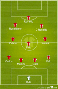 “I will have the three Ronaldo's up front, starting with Cristiano. I learnt a lot from him, which helped in my career, when we played for Real Madrid. He is the best player on the planet at the moment, a special player.”