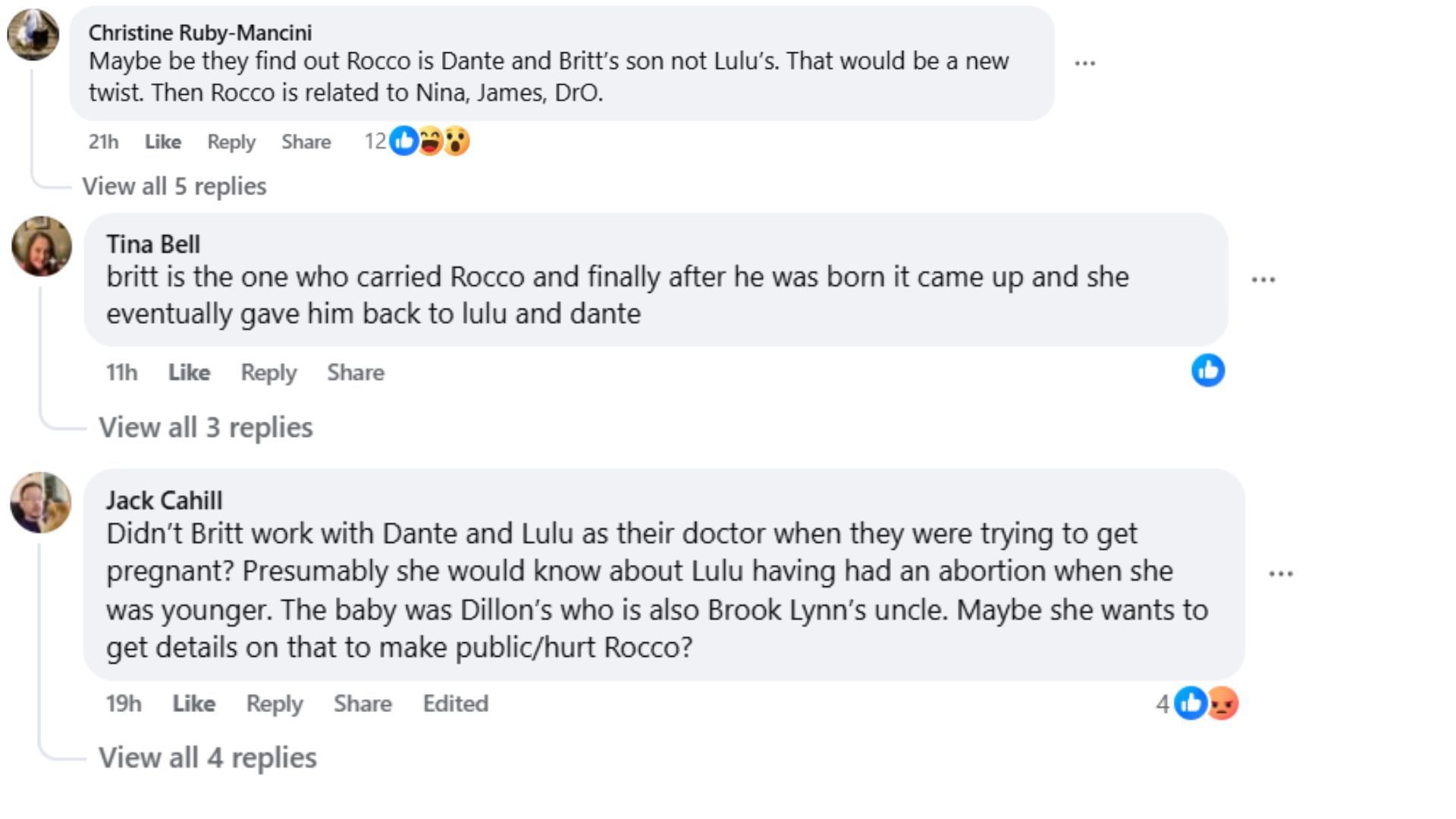 Many fans of the soap opera General Hospital took an interest in the post and shared their opinions on the same. While some fans speculated that Rocco might be Britt and Dante's son, and not Lulu's. Others also commented about her past, as she had an abortion as a teenager.