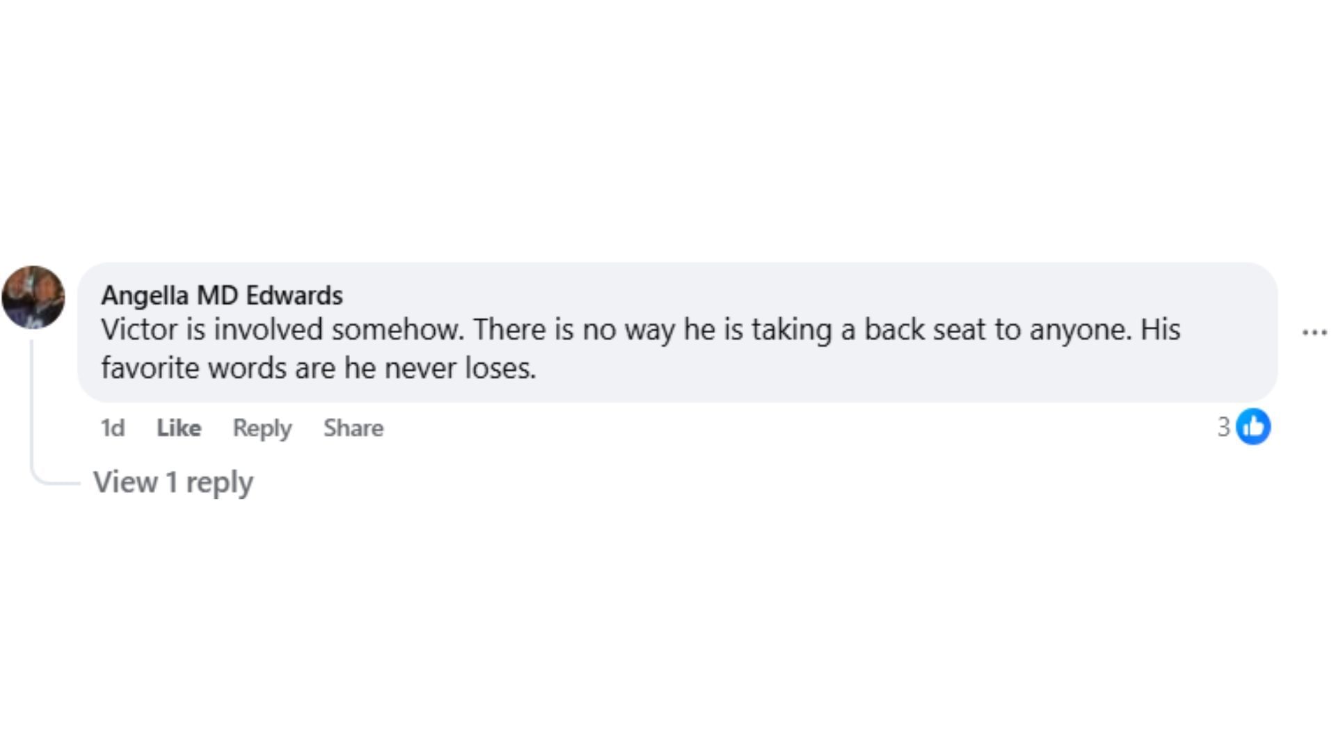 "Victor is involved somehow. There is no way he is taking a back seat to anyone. His favorite words are he never loses."